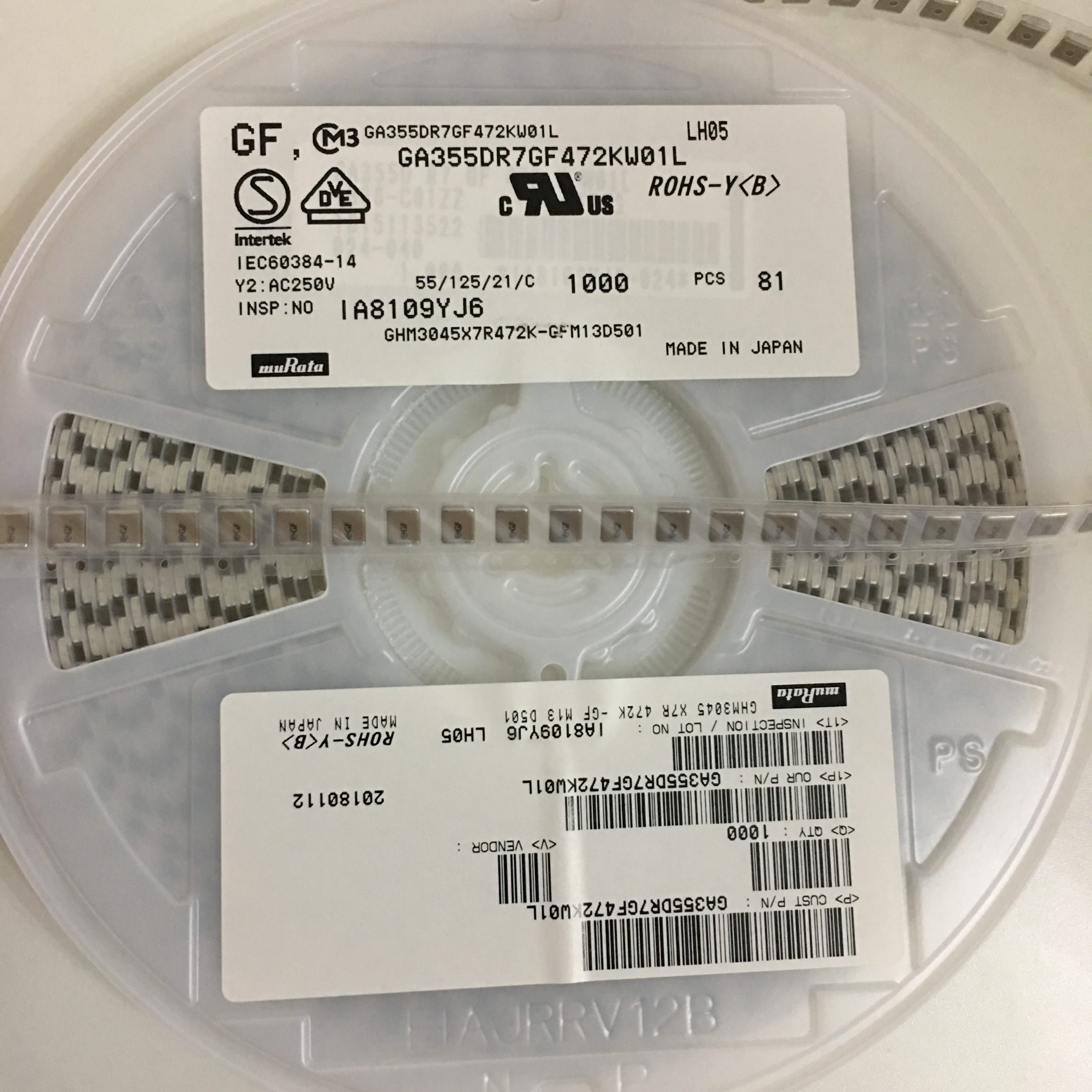 深圳智成村田代理商供應安規(guī)貼片電容GA355DR7GF472KW01L