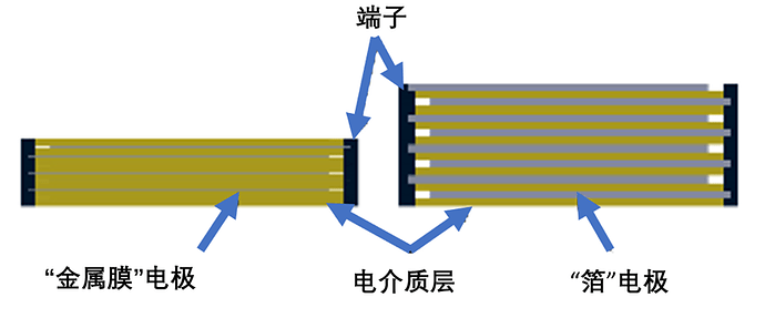 薄膜電容啊,說白了就是一種用紙或者一些聚合物做成的靜電器件。這些材料會(huì)形成很薄的片,跟電極材料混在一起就成了電容。人們說的“薄膜電容”,就是指這種用這種工藝做出來的任何器件。而“薄膜”這個(gè)詞指的是那些介電材料的性質(zhì)。如果說“金屬”用來修飾“薄膜”,比如“金屬膜”或者“金屬化膜”,那就是更具體地指那種電極材料非常薄(10納米)的器件,通常是用真空沉積工藝做在支撐基板上的。經(jīng)常使用的襯底也用作電容的介電材料,但不一定每次都是這樣。相比之下,“箔”電極電容用的電極材料就像我們家里用的鋁箔,這種材料的厚度足夠(微米數(shù)量級(jí)),可以在機(jī)械上自我支撐。